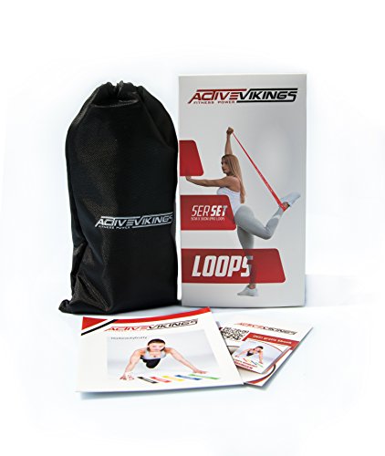 ACTIVEVIKINGSHochwertige Qualität und Modernes Design zeichnen die Widerstandsbänder von ActiveVikings aus.Ideal für Fitnessübungen wie Pilates, Yoga, Gymnastik, Crossfit, Fitnesskurse und Dehnungsübungen.Die Widerstandsbänder werden auch meist standartmäßig für die Physiotherapie in Rehas angewandt. Mit den Loop Fitnessbändern von ActiveVikings, fördern Sie Ihren Muskelaufbau, Beweglichkeit und Ihre Retorik. Sie können Spezifische Muskelgruppen Trainieren oder Ihren ganzen Körper. Durch die Widerstandsbänder straffen Sie nicht nur Bauch Beine und Po, sondern Dehnen Ihren Körper, was zu einer besseren Flexibiltät der Sehnen und Muskelgruppen führt.WAS IST ENTHALTEN UND WAS SIND DIE VORTEILE DES HOCHWERTIGEN WIDERSTANDSBANDES-SETS Sie erhalten ein Set aus 5 Loop Fitnessbänder und einen passenden Sportbeutel. Die Fitnessbänder haben verschiedene Widerstandsstärken: Leicht – Mittel – Stark – Extra Stark Ultra Stark Die Bänder sind auch jeweils gekennzeichnet, so das Sie wissen welches Band, welche Stärke hat. Es sind Fitnessübungen jeglicher Art möglich. Schnelle und Praktische Anwendung, überall und jederzeit anwendbar, wie z.B. Im Urlaub, Fitnessstudio in Kursen oder in Ihren Mittagspausen. Vielseitige und Effektive Übungen, durch verschiedene Widerstandsstärken. Ideal für Frauen und Männer jeden Alters. Die hochwertigen Widerstandsbänder sind Robust und Langlebig, somit halten diese auch viele Jahre. Durch das Richtige Training mit unseren Fitnessbändern, können Sie Verletzungen vorbeugen und zur Rehabilitation der Muskulatur mitwirken. Eine Anleitung für spezielle Übungen ist ebenfalls enthalten