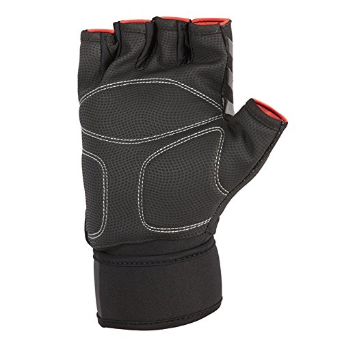 adidas Fingerlose Fitnesshandschuhe aus leichtem Mesh-Material bieten Schutz beim Training; gepolsterte Handinnenfläche; elastische Manschetten mit Klettverschluss an den Handgelenken; 3-Streifen Design; Logo-Detail; Material 50% Polyester, 33% Polyamid, 17% Polyurethan.