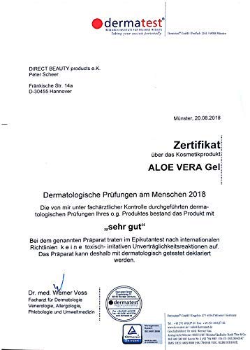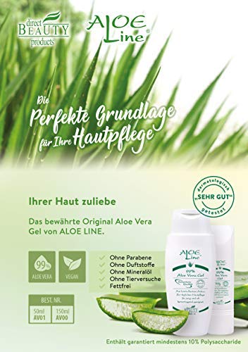 „ALOE Line“ Aloe Vera GEL 99% von DIRECT BEAUTY ist dermatologisch auf uneingeschräkte Hautverträglichkeit geprüft (dermatologisch getestet). Für die Rohstoffgewinnung (aus Kaltpressung) wird ausschließlich das Filet (Pflanzenblattinnere) der Aloe Barbadensis Miller Pflanze eingesetzt. Der Aloe Vera Rohstoff ist IASC zertifiziert. Das Aloe Vera Gel hat sich mit seinem enormen Wirkstoffdepot (ca. 200 nachgewiesene Wirkstoffe) über Jahrzehnte in der täglichen Feuchtigkeitsversorgung der Haut bewährt und ist somit unverzichtbar. Bedingt durch den sehr hohen Anteil an feuchtigkeitsspendenden nachtürlichen Wirkstoffen, pflegt, schützt und glättet Aloe Vera Gel die Haut. Es wirkt dadurch der Faltenbildung sehr gut entgegen, verfeinert das Hautbild und verbessert die Elastizität. Die Zellneubildung wird unterstützt. Hierdurch wird die Haut sichtbar belebt und erfrischt. Das Aloe Vera Gel wird von der Haut schnell aufgenommen und fettet nicht. Es eignet sich grundsätzlich hervorragend als tägliche Feuchtigkeitsversorgung der Haut.