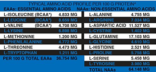 (1) BEZOGEN AUF DIE AMINOSÄUREN-, VITAMIN- UND MINERALSTOFFQUELLEN. (2) Verzweikettigte Aminosäuren (BCAA) (3) PEPTIDHALTIGE & HYDROLYSIERTE AMINOSÄURENQUELLEN HABEN GEGENÜBER INTAKTEN AMINOSÄURENQUELLE DIE EIGENSCHAFT EINER SCHNELLEREN RESORBTIONSFÄHIGKEIT. AMINO 3 NUTZT DIESE EIGENSCHAFT AMINOSÄUREN ZEITVERSETZT IN DIE BLUTBAHN ZU FÜHREN. (4) Typisches Aminosäurenprofil pro 100gr. Protein.