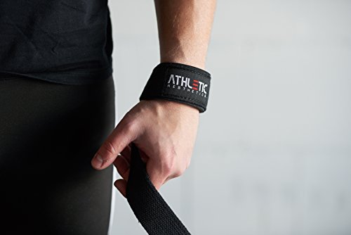 Bringe dein Training auf die nächste Stufe Schütze und entlaste deine Hände mit den ATHLETIC AESTHETICS Zughilfen um mehr Gewicht mit weniger Aufwand zu bewegen. Unsere Zughilfen wurden in Zusammenarbeit mit professionellen Kraftsportathleten des KDK entwickelt und in der Praxis getestet. Profitiere von der unterstützenden Wirkung unserer Zughilfen und sichere dir diese Vorteile: ATHLETIC AESTHETICS Zughilfen in Profi-Qualität- Hochwertiges Material – extra breites Neoprenpolster für bequemen Halt – Entwicklung und Produktion mit professionellen Kraftsportathleten des KDK – Speziell umsäumte Ränder für noch mehr Haltbarkeit – Für Frauen & Männer geeignet. DEIN TRAINING ZÄHLT Unsere Zughilfen finden Anwendung in vielen Sportarten. Darunter vor allem das Krafttraining, Bodybuilding, Powerlifting, Crossfit als auch Fitnesstraining. Die Zughilfen erfüllen den Zweck dir dein Training leichter zu gestalten. Sie nehmen dir die Griffkraftanstrengung ab und erlauben es dir, dich besser auf dein Workout und die Übung zu fokussieren. Wichtig ist, dass die Zughilfen keine gute Griffkraft ersetzen. Wer Powerlifting oder Gewichtheben etc. ausüben möchte, sollte auch seine Griffkraft entsprechend trainieren. 100% Zufriedenheits-Garantie Bestelle komplett sorgenfrei! Sollten dir die Zughilfen nicht gefallen, kannst du uns einfach kontaktieren und wir finden eine Lösung für dich! Lieferumfang: – 1 Paar (2 Zughilfen) ATHLETIC AESTHETICS Lifting Straps in Stoff und schwarz – Für Handwäsche geeignet