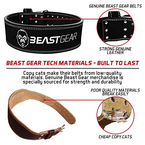 Der Beast Gear PowerBelt (Powerlifting Gewichthebergürtel aus Nubukleder) bietet stärkere, länger anhaltende Unterstützung mit einem fortschrittlichen, doppelten Edelstahlschnallen Verschlusssystem für ein noch sicheres & dennoch schnelles & einfaches Anlegen. Wie würde es sich anfühlen, wenn Du noch mehr Gewicht heben könntest?Gewichthebergürtelerhöhen den Druck Abdominaldruck, welcher sich stabilisierend auf die Wirbelsäule auswirkt. Beim Hocken oder Kreuzheben schwerer Gewichte erhöht unser Gürtel deine Leistung beim Heben. Sicherer & Schwerer heben – Wettkampf-konformBeast Gear produziert Wettkampf konforme Gewichthebergürtel aus echtem Leder, die eine stärkere & länger anhaltende Unterstützung gewährleisten. Mit rein natürlichen Materialien & Herstellungsverfahren produziert – Unsere Gürtel erhalten die natürlichen Eigenschaften des Leders & gehen keine Kompromisse bei der Stärke & Festigkeit der Materialien ein. Wir vertrauen unseren Gürteln täglich beim Training, & das kannst Du auch. Warum sich für Beast Gear entscheiden? 10,2 cm breit & 10mm dick – für zusätzlichen Support 100% Echtes Nubukleder – Beast Gear fertigt nur mit den besten Materialien Doppelte Dornschließe – Mehr Sicherheit, einfach einstellbarNieten & Schnalle aus Edelstahl – sicherer als Standardnieten & -schnallen. Beast Gear High-Performance Nähte – für ein stärkeres & robusteren Gürtelsystem Konform mit der Powerlifting Federation Häufige FragenF: Brauche ich einen Gewichthebergürtel?A: Wenn Du schwer heben willst – Ja. Beast Gear Gürtel halten Deinen Rücken in einer sicheren Position.F: Worauf muss ich beim Kauf eines Gürtels achten?A: Kaufe einen robusten Gürtel aus Leder mit robuster Schnalle & Nieten. Vermeide billige, unsichere Gürtel.