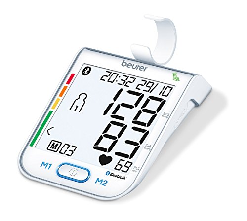 Das BM 77 von beurer ist ein Oberarm-Blutdruckmessgerät mit einer innovativen Bluetooth-Schnittstelle, mit der sich das Gerät auf einfachste Weise mit ihrem Smartphone vernetzen lässt. Dort können Sie Ihre Messwerte mithilfe der beurer HealthManager App auswerten, überwachen oder an Ihren Hausarzt weiterleiten. Der patentierte Ruheindikator stellt genaue Messergebnisse sicher und die Arrhythmie-Erkennung warnt bei eventuellen Herzrhythmusstörungen. Das große Jumbo LCD Display und die beleuchteten Tasten ermöglichen eine benutzerfreundliche Bedienung. Das BM 77 besitzt außerdem 2 x 60 Speicherplätze und eine farbige Skala zum Einstufen der Messwerte.Produktdetails:• Vollautomatische Blutdruck- und Pulsmessung am Oberarm• Innovative Vernetzung zwischen Smartphone und Blutdruckmessgerät. Monitoring der Messergebnisse über Beurer HealthManager App / Web / PC• Übertragung: per Bluetooth® low energy technology und USB• Patentierter Ruheindikator für genaue Messergebnisse (Patent EP 1 673 009)• Jumbo LCD, weiße Hintergrundbeleuchtung (94 x 92 mm)• Beleuchtete Sensor-Touch Knöpfe• Beleuchtete START/STOPP-Taste• 2 x 60 Speicherplätze / Durchschnittswertberechnung• Einstufung der Messergebnisse mit farbiger Skala• Arrhythmie-Erkennung: erkennt und warnt bei eventuellen Herzrhythmusstörungen• Medizinprodukt• Optimale Armumfang Kontrolle mit Manschette für Oberarmumfänge 24 – 40 cm• Datum und Uhrzeit• Abschaltautomatik• Meldung bei Anwendungsfehler• Automatische Druckvorwahl und Luftablass• Batteriewechselanzeige• Inklusive Manschettenhalter und Aufbewahrungstasche• Inkl. 4 x 1.5V AAA Batterien• 3 Jahre Garantie