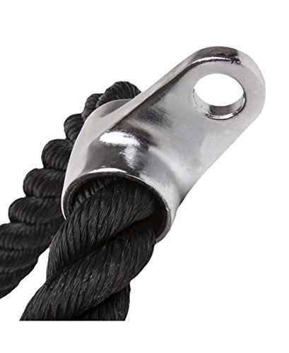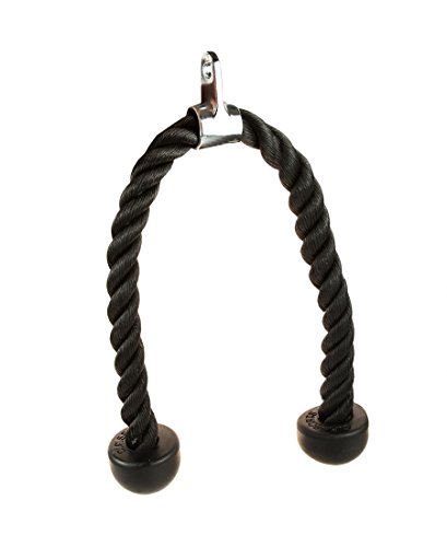 Das C.P. Sports Trizepsseil ist ein extrem belastbares Polypropylen-Seil, haltbar und robust und geeignet für vielseitige, beidarmige Zugübungen am Multi- oder Kabelzugturm. Zum Trainieren der Bizeps- und Trizepsmuskulatur. Dadurch, dass die Ellenbogen beim Training mit dem Tau dicht zusammenbleiben, wird der innere Bizeps besonders gefordert. Das Drehgelenk und die Gummi-Enden mit einem Durchmesser von 6 cm ermöglichen ein komfortables und sicheres Training und individuelle Haltungsmöglichkeiten. Besondere Merkmale: · Länge Seil ca. 60 cm · Gesamtlänge incl. Endstücke ca. 70 cm · Durchmesser des Seils ca. 2,5 cm · mit Drehgelenk · für das Bizeps- und Trizepstraining am Multi- oder Seilzugturm · extrem belastbares Polypropylen Material: Polypropylen Einheitsgröße Farbe: schwarz Lieferumfang: 1 C.P. Sports Trizepsseil