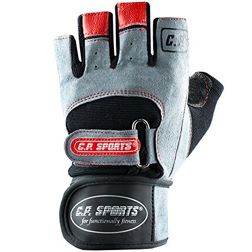 Der C.P. Sports Pro Trainer Handschuh ist ein sehr hochwertig verarbeiteter Fitnesshandschuh und gewährleistet einen absolut hohen Tragekomfort. Weiches, komfortables Polster in der Innenhand, Handrücken mit flexiblen Elastan-Einsätzen und eine doppelte Handbandage mit Klettverschluss sorgen für perfekten Sitz und Schutz des Handgelenks. Waschbar! Besondere Merkmale: hochwertiger Tragekomfort komfortables Innenhandpolster flexible Spandex-Einsätze für perfekte Passform doppelte Handgelenkbandage mit Klettverschluss waschbar! Material: 50% Polyurethan, 50% Nylon Erhältlich in den Größen: S – M – L – XL – XXL Erhältlich in der Farbe: schwarz/grau Lieferumfang: 1 Paar C.P. Sports Pro Trainer Handschuhe