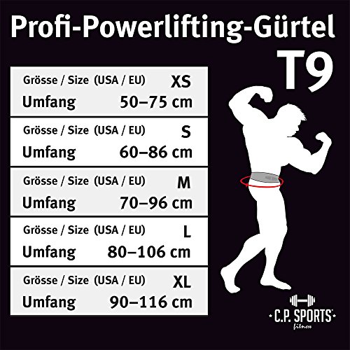 Der C.P. Sports Profi-Powerlifting-Gürtel ist ein extrem stabiler, mehrlagiger Gürtel aus Buffalo-Leder. Mit einem absolut sicheren, stabilen und festen Patentverschluss mit verchromter Schnalle ist er wettkampferprobt und daher für Profis bestens geeignet. Einsetzbar für Maximaltraining mit schweren Gewichten im Bereich Kraftsport, Powerlifting und Dreikampf. Der Gürtel stützt und stabilisiert die Wirbelsäule und entlastet die Knie bei schweren Kniebeugen, Kreuzheben, Bankdrücken usw. Die richtige Größe lässt sich ermittteln, indem Sie Ihren Taillenumfang auf Bauchnabelhöhe genau messen. Besondere Merkmale: · mehrlagiges, extrem stabiles und hochwertiges Buffalo-Leder · geeignet für Profis – wettkampferprobt mit absolut sicherem Patentverschluss · Schnalle verchromt · Breite 9,5 cm · Stärke 1 cm Material: 100% Leder Farbe: rot Erhältlich in den Größen (Tailenumfang in cm): XS (50-75cm) – S (60-86cm) – M (70-96cm) – L (80-106cm) – XL (90-116cm) XXL (100-126cm) Lieferumfang: 1 Powerlifting-Gürtel in der gewünschten Größe
