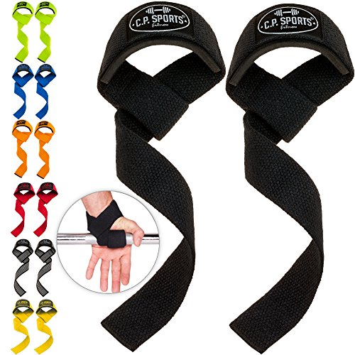 Zughilfen unterstützen und entlasten die Unterarme, da sie nicht die Kraft der Rückenmuskulatur besitzen, bei der optimalen Ausführung von Kreuzheben, Klimmzügen, schwerem Nackenziehen u.ä. und ermöglichen mehr Wiederholungen oder auch mehr Gewicht. Außerdem erhöhen diese einfachen Lifting Straps die Zugkraft an der Stange und erleichtern die Griffkraft. Die C.P. Sports Zughilfen Klassik sind aus strapazierfähiger und robuster Baumwolle, komfortabel gepolstert mit einem Neoprenpolster im Handgelenkbereich, hervorragend geeignet für Bodybuilder und Kraftsportler. Anwendung: Das Ende der Zughilfe so durch die Schlaufe ziehen, dass sich das Schlaufenende unter dem Daumen befindet. Nun das Zughilfenende von unten, entgegen der Handöffnung, um die Stange legen, mit Daumen und Fingern herumwickeln, und durch Nachgreifen die gewünschte Zugspannung erreichen! Besondere Merkmale: · strapazierfähige Baumwolle · rutschfest und reißfest · Gesamtlänge 50 cm, Breite 4 cm · geeignet für Bodybuilder und Kraftsportler · schonendes Neoprenpolster im Handgelenkbereich Material: 100% Baumwolle mit Neoprenpolster Einheitsgröße Farbe: schwarz Lieferumfang: 1 Paar C.P. Sports Zughilfen Standard