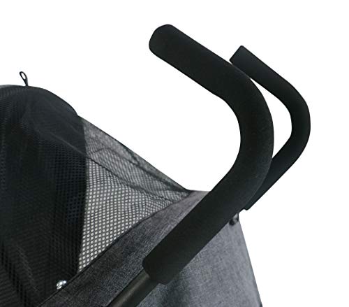 Der superleichte 'Balu' Kinderwagen kompakt Buggy von Clamaro – Federleichter und klappbarer Premium Kinderwagen Sportbuggy mit Komfortausstattung Der Clamaro 'Balu' superleicht Buggy ist ein kompaktes Reisebuggy System mit einem Gesamtgewicht von nur ca. 6,5 kg. Speziell entwickelt für Eltern, die trotz festem Budget weder Abstriche in Sachen Qualität oder Premium Funktionalitäten machen wollen. Clamaro stattet diesen modernen Stadt Buggy mit einem extra großen und sehr tief ausfaltbaren Sonnenschutzdach aus. Die stufenlos verstellbare Rückenlehne inkl. Liegefunktion, machen der Clamaro 'Balu' Liegebuggy ideal für ein störungsfreies und erholsames Mittagsschläfchen. Das extra tiefe Dach bietet Schutz vor direkter Sonneneinstrahlung, Wind und Lärm. Durch das im Dach integrierte Sichtfenster haben Sie Ihren Schützling auch stets gut im Blick. Mit einem Handgriff ist der mobile Buggy zusammengeklappt und dank des leichten Gewichts auch komfortabel zu transportieren. Premium Komfortausstattung: Robustes Metall Gestell (belastbar bis 25 kg), kompakt zusammenklappbar Vorne mit 360° drehbaren Rädern (feststellbar), hinten mit Bremse Großes XL Sonnenverdeck, sehr tief ausfaltbar mit extra Sichtfenster Stufenlos verstellbare Rückenlehne mit Liegeposition Bequem gepolsterte Sitz- und Rückenlehne, verstellbare Beinablage 5-Punkt Gurt und Bügel (Gurt und Bügel sind extra gepolstert) Großer Einkaufskorb unter dem Gestell Bezüge, abnehmbar und waschbar bei 30°C (Handwäsche) Technische Details: Zusammengeklappt (L/B/H): 104 x 33 x 30 cm Aufgebaut (H/B/T): 106 x 47 x 61 cm Belastbarkeitsgrenze: 25 kg Höhe Rückenlehne: 41 cm Sitztiefe: 18 cm Sitzbreite: 33cm Schiebehöhe: 106 cm Durchmesser Räder: 13 cm Liegefläche: 78cm Gewicht: 6,5 kg