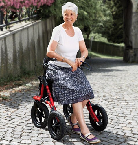 Der Outdoor-Rollator TAiMA XC der Firma Dietz ist durch die luftbereiften Räder und das geringe Gewicht von nur 8,2kg bestens für Spaziergänge und lange Wanderungen ausgestattet. Durch die Luftbereifung werden die Gelenke im Hand und Schulterbereich gerade auf langen und unebenen Wegen geschont. • große Räder / Ergogriffe / einfach faltbar und verriegelbar / steht auch in gefaltetem Zustand / Ankipphilfe zum Überwinden von Hindernissen / Farbe: rotTechnische Daten:• Gewicht 8,2 kg / Max. Belastbarkeit 150 kg• Sitzbreite 45 cm / Sitztiefe 23 cm / Sitzhöhe 60 cm• Gesamtbreite 66 cm / Gesamthöhe 85 – 95 cm / Gesamtlänge 75 cmLieferumfang:• Rollator TAiMA_XC / Stockhalter / Netztasche / Gebrauchsanweisung