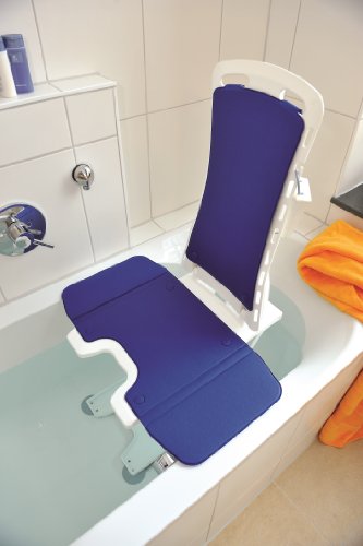 Der Comfort-Badewannenlift bellavita von Drive Medical ist der leichteste seiner Klasse• Der einzige Badelift mit nur 9,3 kg Gewicht – maximale Belastbarkeit und Stabilität• Passt in jede Badewanne: Bellavita benötigt auch bei hohen Wannen (bis 48 cm) keine Höhenadapter. Somit kann man stets die optimale Badetiefe nutzen• Hygieneaussparung: erleichtert die Intimhygiene• Sitz- und Rückenteil sind ergonomisch geformt• Einfach zu reinigen: durch glatte Oberflächen und geschlossene Rückeneinheit• Schwimmfähige und bequeme Handsteuerung bietet optimale Sicherheit durch Ampelfunktion, welche den Ladezustand sicher anzeigt• Akku ist in der Handsteuerung integriert und kann jederzeit geladen werden• Kein Montageaufwand: Auspacken, Haftsauger anbringen und fertig• Leicht und Kompakt: Bellavita lässt sich leicht verstauen und transportieren – entweder zusammen gefaltet oder in 2 Teilen• Comfort Bezüge sind leicht abnehmbarTechnische Daten:• max. Belastung: 140 kg Körpergewicht• Gesamtgewicht ohne Handsteuerung: 9,3 kg• Gesamtgewicht mit Handsteuerung: 9,7 kg• Gewicht Sitzeinheit: 5,5 kg• Gewicht Rückeneinheit inkl. Antrieb: 3,8 kg• Akku (in der Handsteuerung integriert): neueste Lithium-Ionen Technologie• Ladedauer Akku: max. 4 Stunden jederzeit aufladbar• Rückenlehne (Höhe / Breite): ca. 640 mm / 320-360 mm• Verstellung Rückenlehne: von 10° bis 50°Farbe:• blauLieferumfang:• Badewannenlift Bellavita inkl. Fernbedienung mit integriertem Akku• Sitzbezug Comfort für Sitzfläche, Seitenteile und Rückenlehne in blau• Bedienungsanleitung• Saugnäpfe