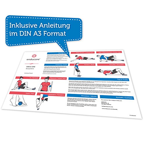 Wie Du gezielt Verspannungen lockern und dein Bindegewebe reparieren kannst – das enducore Faszienball Set Stell dir vor, Du könntest dich auch nach dem Sport federleicht bewegen und deine Verspannungen endlich bekämpfen. Darauf sind wir spezialisiert. Wir kennen die Folgen von langem Sitzen und die Verspannungen und Rückenschmerzen. Aber als wir punktuelle Ballmassage entdeckten, wurde es schnell besser. Heute haben wir eine verlässliche Antwort auf Rückenschmerzen und Verspannungen. Was Du erwarten darfst: Bekämpfe deine Verspannungen effektiv mit Faszienmassage. Straffe dein Bindegewebe und verbessere dein Hautbild (Cellulite). Greife Muskelkater an und sei schneller wieder fit. Laufe mit weniger Verspannungen durch den Alltag. Im Set bekommst Du jeweils einen Ball in 8cm und 10cm. So brauchst Du Dich nicht darum sorgen, ob Du das passende Gerät für deine Verspannung parat hast-was bei einem Einzelball nicht unbedingt der Fall ist. Mit unserem Set kannst Du also sofort loslegen! Die Bälle sind weniger hart als bspw. Korkbälle oder Lacrosse-Bälle aus Silikon. So kannst Du empfindliche Muskeln auflockern. Die Highlights im Überblick: ✓ Massage Ball 8cm im Härtegrad medium / mittel hart ✓ Massage Ball 10cm im Härtegrad soft / weich ✓ Leicht und mobil – für Zuhause, unterwegs oder im Studio ✓ Inkl. Anleitung mit praktischen Übungsbeispielen Mit 8cm Durchmesser kannst Du präzise kleinere Verspannungen angreifen. Der 10cm Ball eignet sich dazu, größere Schmerzpunkte effektiv loszuwerden. Bestelle jetzt und fange bald schon an, weniger verspannt durchs Leben zu gehen!