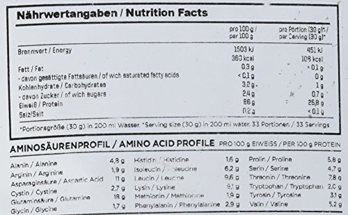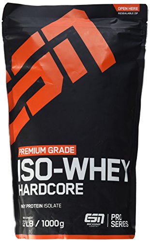 IsoWhey Hardcore von ESN (Elite Sports Nutrients – Made in Germany)ESN IsoWhey Hardcore- cross-flow mikrofiltriertes Whey Protein Isolat (CFM)- reines CFM Whey Isolat (vollinstant)- extrem hoher Proteingehalt- hoher Gehalt an bioaktiven Proteinfraktionen- allerhöchste Whey Qualität- ausgesuchte Rohstoffe von den besten Rohstoffherstellern- sehr wenig Kohlenhydrate und fettarm- lactosearm (sehr wenig Milchzucker)- reich an BCAA & Glutamin- hohe biologische Verfügbarkeit- enthält alle Proteinfraktionen vollständig- sehr leicht löslich (vollinstant)- hervorragende Geschmacksrichtungen- Aspartame Free- Premium Qualität- geeignet für Vegetarier die Milchprodukte verzehren- ESN Supplements > Made in Germany- Qualitätsprodukt hergestellt in Deutschland Aminosäurenbilanz pro 100 g ProteinAlanin/alanine 4,8 gArginin/arginine 1,9 gAsparaginsäure/aspartic acid 11,0 gCystin/cysteine 2,7 gGlutaminsäure/glutamic acid 18,0 gGlycin/glycine 1,7 gHistidin/histidine 1,6 gIsoleucin/isoleucine (BCAA) 6,2 gLeucin/leucine (BCAA) 9,6 gLysin/lysine 9,1 gMethionin/methionine 1,9 gPhenylalanin/phenlyalanine 2,9 gProlin/proline 5,8 gSerin/serine 4,7 gThreonin/threonine 7,8 gTryptophan/tryptophan 2,0 gTyrosin/tyrosine 3,1 gValin/valine (BCAA) 5,2 gZutaten am Beispiel Vanilla:Molkeneiweißisolat, Aromen, Emulgator: Sojalecithin, Süßungsmittel: Sucralose, Acesulfam K. Enthält Milcherzeugnisse und ein Sojaerzeugnis (Sojalecithin).Hersteller:Fitmart GmbH & Co. KG, Industriestraße 10 d, 25462 Rellingen, DeutschlandInhalt1000g Pulver (Standbeutel wiederverschließbar)Der Beschreibungstext des Artikels unterliegt dem Urheberrecht des Verfassers und darf nicht von Dritten verwendet werden!