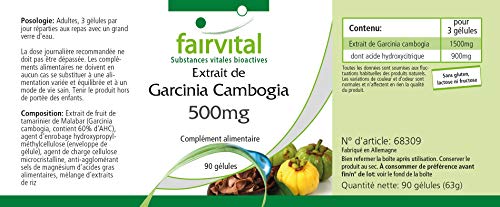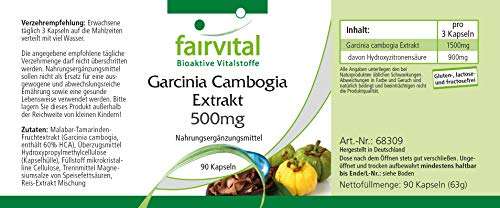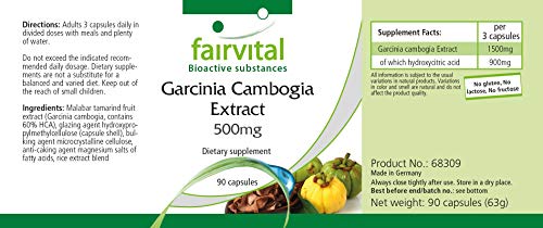 Garcinia Cambogia Extrakt 500mg, enthält 60% HCA, vegan, 90 KapselnGarcinia Cambogia ist auch unter dem Namen Malabar-Tamarinde bekannt. Es handelt sich um einen immergrünen Baum, der aus Indien und Sri Lanka stammt. Ein besonderer Inhaltsstoff ist HCA (Hydroxyzitronensäure).- 500mg Garcinia Cambogia Extrakt pro Kapsel- standardisiert auf 60% HCA (Hydroxyzitronensäure)- entspricht 300mg HCA pro Kapsel- glutenfrei, lactosefrei, fructosefrei, vegan- ohne SiliciumdioxidVerzehrempfehlung:Erwachsene täglich 3 Kapseln auf die Mahlzeiten verteilt mit viel Wasser.Drei Kapseln enthalten:Garcinia cambogia Extrakt 1500mg davon Hydroxyzitronensäure 900mgZutaten: Malabar-Tamarinden-Fruchtextrakt (Garcinia Cambogia, enthält 60% HCA), Überzugsmittel Hydroxypropylmethylcellulose (Kapselhülle), Füllstoff mikrokristalline Cellulose,Trennmittel Magnesiumsalze von Speisefettsäuren, Reis-Extrakt MischungNettoinhalt: 63g/90 Kapseln