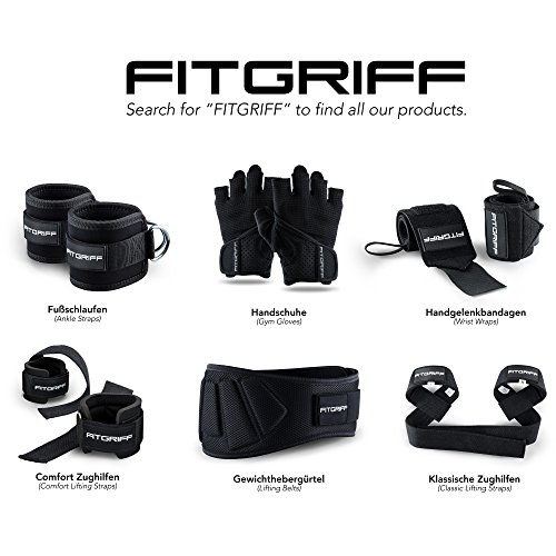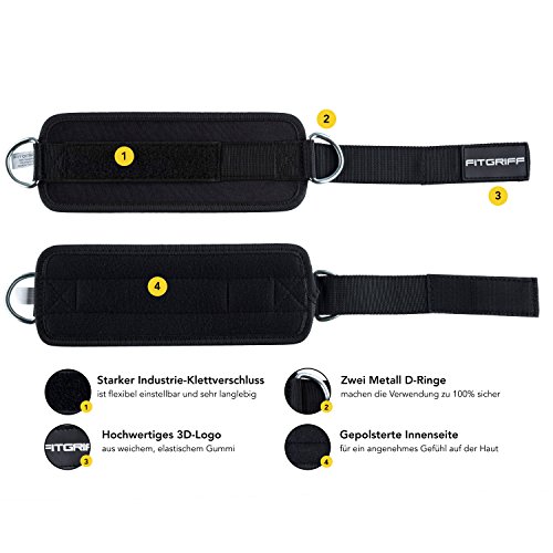Fußschlaufen für Beinübungen am Kabelzug! Fitgriff bietet Fußschlaufen in Premium-Qualität – Extra starker Industrie-Klettverschluss – Hochwertige Materialien – Eine Größe passt allen. (Frauen und Männer) – angenehme Polsterung Sicherheit geht vor! Unsere Fußschlaufen sind beidseitig mit einem Metallring versehen, dies macht die Verwendung zu 100% sicher, auch bei hohem Trainingsgewicht. Für alle Arten von Kraftsport: Bodybuilding, Krafttraining, Crossfit, Fitness, usw. Was Fitgriff Bandagen von Standard Modellen unterscheidet? – Wir verwenden hochwertiges und langlebiges Material für unseren Klettverschluss – Angepasste Größen sorgen für top Funktionalität gepaart mit schöner Optik – Zwei Ringösen anstatt einer „Das Resultat sind Fußschlaufen, die länger halten als andere Marken“ Lieferumfang: – 2 Stück (Material: 90% Neopren 10% Polyester) – Maße ohne Klettverschluss: 25cm lang x 10cm breit – Kommt mit Gebrauchsanleitung – Kommt in spezieller Fitgriff Verpackung 2 Jahre Garantie: Wir sind zuversichtlich, dass du die Fitgriff Fußschlaufen lieben wirst. Falls nicht, kontaktiere uns einfach. kabelturm damen herren