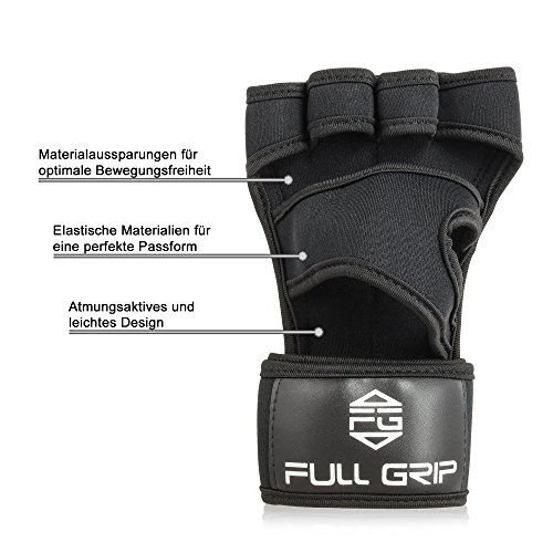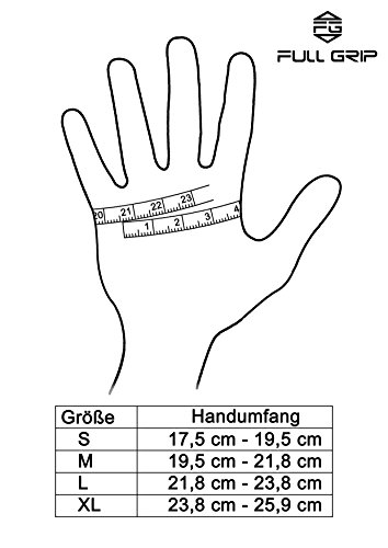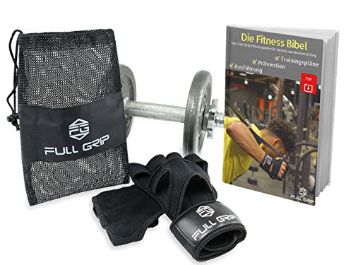 Premium 2-in-1-Sporthandschuh in professioneller Qualität – Der ultimative SportbegleiterWarum verkaufen wir Sporthandschuhe? Jeder kennt das Problem: Man ist mitten im Training, die Kraftreserven lassen allmählich nach, Schmerzen plagen einen und die Stabilität schwindet langsam aber sicher.Zumeist ist die Ursache hierfür in der aufgerissenen Hornhaut oder einem eingeknickten Handgelenk zu finden.Wir haben es uns zur Aufgabe gemacht, einen EINMALIGEN Fitnesshandschuh in Sachen Preis, Leistung und Qualität zu konzipieren.Dies ist uns mit FULL GRIP gelungen. Wieso sollten Sie sich für die Full Grip Fitnesshandschuhe entscheiden?Höchstmögliche Stabilität -Die individuell einstellbare Handgelenkstütze schützt wirklich jedes Handgelenk und unterstützt Sie für maximale Erfolge.Zusätzlich trägt sie zur Verletzungsprävention bei! Maximale Griffkraft -Die Lederhandinnenfläche schützt Sie nicht nur vor Hornhaut, Schwielen und Blasen, sie verhilft Ihnen außerdem zum bewundernswerten Grip.Bequem und widerstandsfähiger -Infolge der selektiven Zusammenstellung bester Materialien spüren Sie einen unvergleichbaren Tragekomfort und erleben eine Passform wie angegossen.-Die Investition in Echt-Leder für die Handinnenflächen führt zu einer echten Langzeitinvestition für Sie dank einer signifikant längeren Haltbarkeit. Phänomenale Atmungsaktivität -Das innovative Design erschafft eine Atemfreiheit, die Ihr Training in neue Höhen katapultiert! Kinderleichte Reinigung -Die Full Grip Sporthandschuhe können ganz einfach in der Waschmaschine bei 30° gereinigt werden. Hinweis: Ohne Zusatz von Spülmittel! Kostenlos dazu erhalten Sie unsere“FULL GRIP“-Fitnessbibel und einen speziell dafür angefertigten Transportbeutel. Worauf warten Sie?Erreichen Sie Ihr sportliches Optimum.
