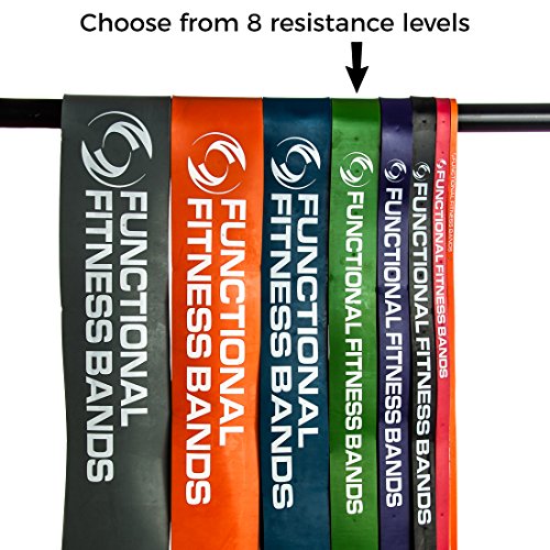 Why pull ups?Pull ups are a great way to strengthen your entire upper body. This multi-purpose exercise is composed of complex movements that allow you to engage multiple muscle groups. This offers a few distinct advantages such as a more efficient workout and decreased risk of injury.Want to add pull ups into your workout routine but haven't yet gained the muscles to do more than two or three pull ups on your own?Our bands will allow you to maximize your time at the pull up bar and capitalize on all the great benefits pull ups have to offer. Why Bands? Our resistance bands offer pull up assistance, but unlike machines the bands allow you a full range of motion. You can also easily adjust the resistance. If you want to increase the resistance from medium to maximum, simply stretch the circular band up to 2.5 times its original length or combine with lighter bands for extra tension. Which band is right for me? We get asked this all the time. We typically suggest that a person start out lifting about half of their body weight over the bar. For some people we might suggest a single band, but since the bands are all the same length, you can combine some bands to equal the same assistance as others. Why would you do this? Well, as you get stronger you can lower the assistance to account for your new strength by using different bands. For example, a 200 lb person might typically need a green band, but a purple combined with a black band offers roughly the same amount of resistance while giving you three different levels of assistance (one with the heavy band, one with robust, and one with both bands). Check out the list below to figure out your correct combination: * 1/2″ Red #2 – 20-35 lbs* 3/4″ Black #3 – 30-50 lbs* 1 1/8″ Purple #4 – 40-80 lbs* 1 3/4″ Green #5 – 50-120 lbs* 2 1/2″ Blue #6 – 60-150 lbs* 3 1/4″ Orange #7 – 70-170 lbs* 4″ Gray #8 – 80-200 lbs