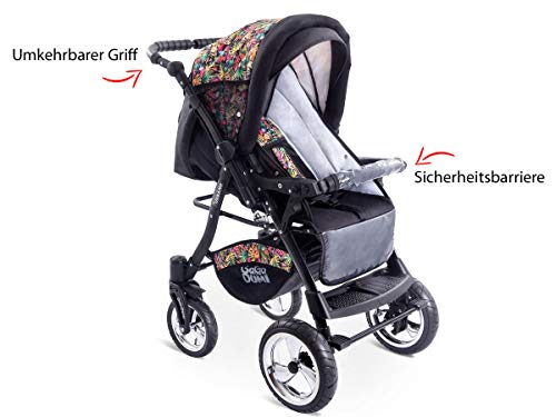 Urbano Travel System Moderner, leichter Trolley mit allem Zubehör inklusive!Einzigartiges, modernes DesignAlles, was Sie brauchen, in einem SetHergestellt in der Europäischen UnionLenkende VorderräderSicher und komfortabelDAS SET BEINHALTET:Kinderwagen/BuggieAutositzSchlafsackWickeltasche und EinkaufskorbBeinschützerHintere Abdeckung und MoskitonetzSpielbrett und SicherheitsbarriereSpezifikation Gewicht:14 kg Breite:60 cm Höhe:114 cm Griffhöhe:83-120 cm Kinderwagen (Mitte):35x86x61 cm(W x L x H) Autositz 3,2 kg Außenmaße:43x68x47 cm (W x L x H) interne Abmessungen:25×72 ( W x L) Packung:97x42x62 cm, 25 kg Beschreibung: 3-in-1-SYSTEM Alles, was Sie brauchen, in einem Set. Vom Autositz über die Einkaufstasche bis zum Spielbrett. Sparen Sie Zeit und Geld, ohne Dutzende von verschiedenen Angeboten durchsuchen zu müssen.Vorderräder drehen Dank der schwenkbaren Vorderräder können Sie den Wagen leicht bewegen, enge Kurven fahren oder in einem Einkaufszentrum einkaufen.Langlebiges und leichtes Mikrochassis und EU-Ursprung machen diesen Wagen robust und sicher, um Ihre Anforderungen zu erfüllen.Bidirektionaler Griff Zwei-Wege-Griff. Diese einzigartige Lösung macht das Gehen für Sie und Ihr Kind angenehm. Mit dem Schwenkgriff können Sie Ihr Kind anschauen (Face-to-Face-Modus) oder Ihr Kind seine neue Welt erkunden lassen (Forward-Facing-Modus).Anpassung Sie können die Position der Grifflehne oder der Fußstütze schnell, einfach und instinktiv ändern. Sie können das obere Fenster öffnen oder die Überdachung zusammenklappen. Befestigen Sie eine Schutzbarriere oder ein Spielgerät. Montieren Sie die Beinabdeckung oder den Schlafsack