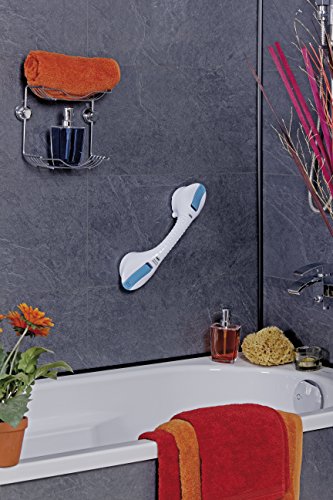 Dieser Haltegriff ist sekundenschnell montiert – ohne Bohren und Schrauben. Mit seinen kräftigen Saugnäpfen hält er auf allen ebenen und nicht porösen Oberflächen. Er eignet sich besonders für eine zeitlich begrenzte Anwendung, auf Reisen und überall dort, wo nicht gebohrt werden kann oder darf. Achtung: der Haltegriff ist nicht dafür konzipiert, das gesamte Körpergewicht zu tragen. Material: Kunststoff Farbe: weiß Gesamtlänge: 420 mm Griff: Ø 32 mm Wandabstand: 70 mm Saugteller: Ø 100 mm Belastung max.: 60 kg
