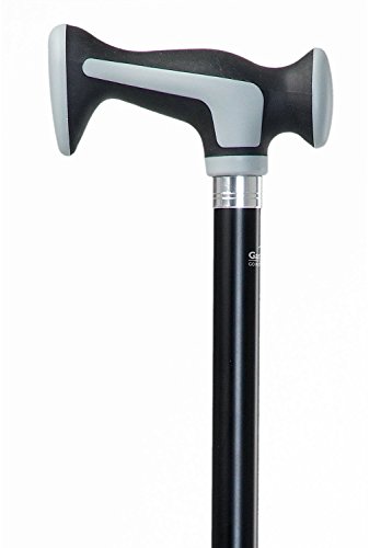 Schwarz/grauer Escortgriff aus Kunststoff mit Überzug und Dämpfungspad aus weichem Gummi, Stock aus Aluminium mit Satin-Finish schwarz, verstellbar 77 – 101 cm, mit Gummipuffer, für Personen bis 110 kg.Ein echter Softgriff als Alternative zu unseren Modellen mit Soft-Beschichtung. Der Griffkern ist aus Kunststoff gegossen und mit weichem Gummimaterial ummantelt. Als zusätzlicher Stoßdämpfer wirkt ein speziell eingelegtes Dämpfungspolster in der Oberhälfte des Griffes, absorbiert die direkten Stöße und entlastet somit die Handgelenke. Deutsches Qualitätsprodukt von Traditionshersteller gefertigt!