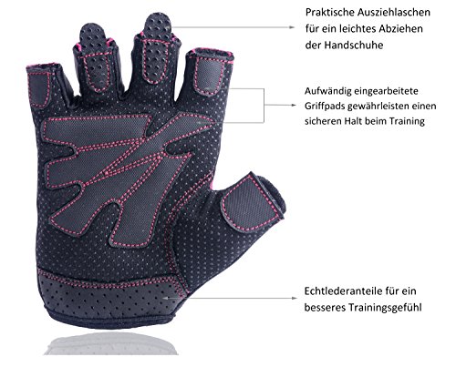Nach vielen Gesprächen mit sportbegeisterten Frauen kennen wir die Probleme von zu breiten Zuschnitten über untergehende kleine Finger bis hin zu übel riechenden Materialien und nutzlosen Griffflächen bei Fitness-Handschuhen. Wir machen es uns daher zur Aufgabe, Handschuhe zu entwerfen, die den weiblichen Bedürfnissen in besonderem Maße gerecht werden sollen. Die Fitness-Handschuhe bieten eine vielseitige Einsetzbarkeit und eignen sich insbesondere für den Fitnesssport, aber auch für das Fahrradfahren, Spinning, Crossfit, Gymnastik, Turnen, Tanzen und viele weitere Sportarten. Sie qualifizieren sich durch vielerlei Merkmale: Weniger Gerüche durch den Einsatz eines atmungsaktives und schweißabsorbierendes Textil-Netzgewebe. Die Handschuhe sind zudem zu 100 % waschmaschinengeeignet. Mehr Komfort dank sorgfältig eingearbeiteter Lycra-Elemente, welche eine optimale Anpassung des Handschuhs an die weibliche Hand gewährleisten. Der Klettverschluss am Handgelenk ermöglicht individuelle Größeneinstellungen. Besserer Halt und somit mehr Sicherheit durch aufwändig eingearbeitete Silikon-Griffpads an der Handinnenfläche – auch bei hohen Trainingsbeanspruchungen. Wirksame Prophylaxe – Spezielle Kunststoffeinlagen beugen nicht nur Verletzungen vor, sondern wirken auch der Bildung unansehnlicher Hornhaut entgegen. Optimierter Schnitt – Unisex-Handschuhe sind wie Alljahresreifen – sie gehen immer irgendwie. Wir kennen jedoch die geschlechterspezifischen Unterschiede und setzen auf unterschiedliche Schnittmuster. Denn auch der kleine Finger zählt zur Hand. Toller Look – Trainingssicherheit und Mode dürfen sich nicht ausschließen. Die Handschuhe sind zeitgerecht modern, sehen toll aus und lassen sich farblich wunderbar kombinieren. Überzeugt? Hand messen, Größe wählen und ab in den Einkaufswagen!