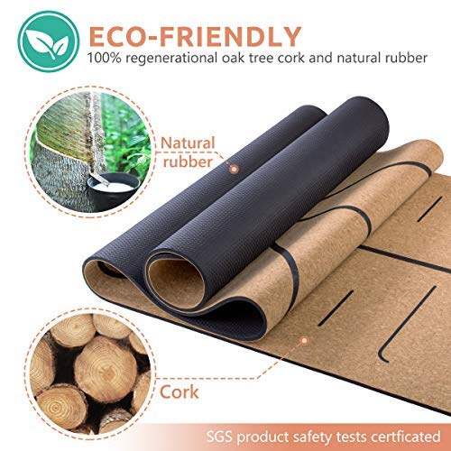 Homtiky Yogamatte Gymnastikmatte aus Naturkautschuk und Kork, Schadstofffreie Sportmatte Korkmatte mit Tragegurt, rutschfeste Fitnessmatte für Gymnastik (183 x 65 x 0,7 cm)