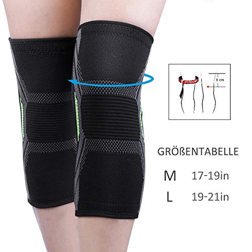 Die Kniebandagen von geben die besten Schutz für ihre Knie.Unsere Knieschoner mit einem hochwertigen, atmungsaktiven Nylon-Gewebe kann das Verletzungsrisiko zu reduzieren, die Regeneration zu fördern und deine Körperwahrnehmung zu verbessern. Egal ob Sie Outdoor-Sport oder Indoor-Fitness möchten, müssen Sie sich keine Sorgen mehr um Ihre Knieverletzung machen.Haben Sie Angst vor einer versehentlichen Knieverletzung beim Training und Sport?Sorgen Sie sich um die Gesundheit Ihres Kindes oder Ihres alten Elternteils?Die Vorteile unserer Knieschützer: Optimale KompressionUmfassender Schutz Absolut rutschfest Sportverletzungen zu verhindern Kein Geruch & atmungsaktivParameter* Material: 75% Nylon, 15% Elasthan, 10% Kautschuk* Größe: M / L* Farbe: Schwarz* Paket einschließlich: 1 Paar Kniestütze