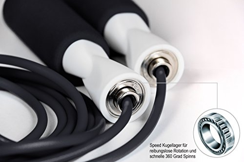 Ihre Vorteile auf einen Blick Nur 5 Minuten Seilspringen verbrennt fast genauso viele Kalorien wie 1 Kilometer Jogging und zählt damit zu den effektivsten Cardio- und Ausdauertrainings Methoden. Sie verbrennen rund 500 Kalorien mit nur 30 Minuten Training. Sie können Ihr Speed Rope überall hin mitnehmen. Rope skipping bietet eine Vielzahl an unterschiedlichsten Übungen und lässt sich dadurch leicht in jeden individuellen Trainingsplan integrieren. Rope skipping verbessert die Kraft Ihrer Sehnen und Bänder sowie Ihren Gleichgewichtssinn und hilft Ihnen gerade die drei sportartübergreifenden, grundlegenden Bewegungsmuster – Tiefe Kniebeuge, Hürdenschritt und Ausfallschritt zu optimieren. Seilspringen ermöglicht das Arbeiten an rechts-links-Asymmetrien, was beim Radfahren oder Laufen beispielsweise nicht realisierbar ist, da dort beide Seiten stets gleichermaßen an der Bewegung beteiligt sind. Rope skipping ist ein effektiver Weg eine gesunde, aufrechte Körperhaltung zu entwickeln. Es verbessert die Fähigkeit, trotz Belastung eine gestreckte Wirbelsäule beizubehalten, da es die Rumpfmuskulatur effektiv stärkt. Seilspringen kann je nach Intensität ein lustiger Zeitvertreib, eine leichte Aufwärmübung oder ein effektives Cardiotraining sein. Im Gegensatz zu vielen anderen Trainingsgeräten erfordert es kein langes Erlernen der richtigen Technik, sondern ist für jeden geeignet, egal ob Anfänger oder Profi. Das ist der Grund, warum das Seilspringen seit jeher fester Bestandteil im Trainingsplan der meisten Profiathleten ist und auch immer mehr Sportler aus dem Amateurbereich dieses vielseitige Sportgerät (wieder) für sich entdecken. Starten Sie Ihr individuelles Training noch heute!