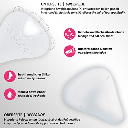 Die ganze Nacht ausgelassen tanzen, lange Arbeitstage und Meetings stilvoll meistern, den schönsten Tag des Lebens schmerzfrei genießen. Mit Kinky-Peds Schuh Einlagen kannst du endlich deine aufregenden High Heels anziehen, ohne Ersatzschuhe mit zu nehmen oder unter Fußschmerzen zu leiden. Hast du schon zahlreiche Gel Einlagen für deine Schuhe ausprobiert, warst jedoch nie zufrieden? Wir auch! Aus genau diesem Grund haben unsere Orthopädietechniker eine besondere Einlage aus Silikon entwickelt, die stundenlang genau DEINE Druckzone entlastet – die ist nämlich nicht bei jedem gleich. Das ist das Besondere an Kinky-Peds: Es gibt eine Variante für jeden Typ Fuß! Stell dir vor, wie es wäre, einfach nicht mehr den Schmerzfaktor bei deiner Schuhwahl einberechnen zu müssen. Das sind Kinky-Peds. Ab jetzt kannst du dich den ganzen Tag und die ganze Nacht selbstbewusst und sexy in deinen Schuhen fühlen und Schmerzen vergessen. Deine Kinky-Ped Silikon Einlagen für High Heels sind besonders, weil: – es für alle Fußtypen eine Variante gibt, die die individuelle Druckschmerz-Zone entlastet- sie waschbar und wiederverwendbar sind (ein Paar reicht für all deine Absatzschuhe) – sie ideal für alle deine hohen Schuhe mit 2-10cm hohen Absätzen sind- sie „Made in Germany“ sind und jahrelang halten- deine Wirbelsäule und Haltung durch die Pelotte unterstützt werden Unsere Silikon Schuheinlagen haben wir für die moderne erfolgreiche Frau entwickelt, die sich in ihrem Alltag nicht um schmerzende Füße und Ersatzschuhe kümmern möchte. TESTE DICH und finde die für dich perfekte Entlastungs-Zone: 1. Stehe barfuß auf Zehenspitzen 2. Unter dem Fußballen, unter dem du den stärksten Druck spürst, befindet sich die für dich perfekte Entlastungszone: Großzehen-Ballen =K1, mittlerer Ballen =K2, Kleinzehen-Ballen =K3.