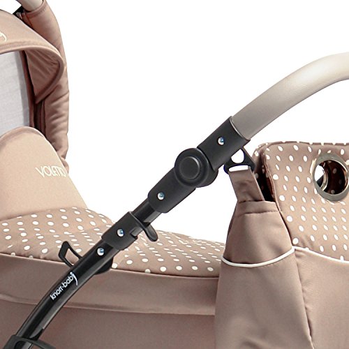 Knorr-Baby Kombikinderwagen Voletto Tupfen – Limited Edition Im Lieferumfang enthalten: Gestell mit Luftkammerrädern Babywanne mit Wagendecke Sportwagensitz mit Sitzeinlage Wickeltasche mit Wickelunterlage Regenschutzfolie Herausnehmbare Sitzauflage Maße und Gewicht: Babywanne : ca. 43 x 87 x 66 cm, Gewicht: ca. 5,5 kg Sportwagensitz: ca. 100 x 65 x 40 cm, Gewicht: ca. 5,5 kg Gestell aufgebaut: ca. 106 x 110 cm Gestell zusammengeklappt: ca. 99 cm x 42 cm Gewicht Gestell: ca. 10,5 kg Optional bestellbar (nicht im Lieferumfang): Autositz passend Adapter für die Autositze Maxi Cosi
