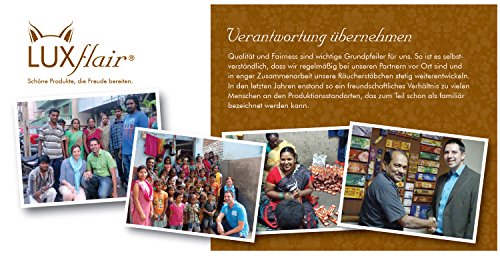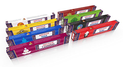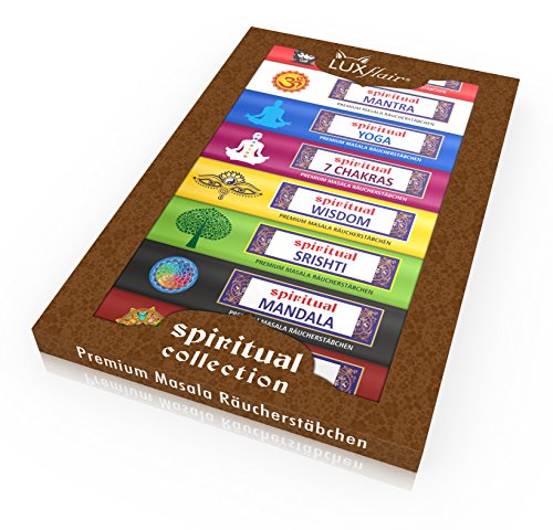 Einzigartige Masala Räucherstäbchen für Geist und Seele (8 unterschiedliche Packungen). Unsere Spiritual Masala Räucherstäbchen zeichnen sich durch sehr hohe Qualität, langer Brenndauer und besonders intensiven und lang anhaltenden Duft aus. Kein Vergleich mit den bereits bekannten „schwarzen Räucherstäbchen“, bei denen die Duftnote durch Eintauchen in Aromaöle zustande kommt. Angezündet verbreiten sie einen sehr feinen, unvergleichlichen Duft der Sie einlädt, die Seele einfach baumeln zu lassen. Durch das Aufhalten im Raum legen sich die Duftpartikel auch auf der Kleidung ab. Sobald Sie an die frische Luft gehen, entfaltet sich eine zweite Duftexplosion und Sie werden von der erzeugten Stimmung noch weiter begleitet. Mit den Spiritual Masala Räucherstäbchen erhalten Sie eine noch nicht gekannte Qualität, die sich sowohl in der Herstellung, den einzigartigen Düften bis hin zur schimmernden Verpackung mit Reliefprägung komplett von bisherigen Räucherstäbchen unterscheiden. Zur Herstellung werden aromatische Kräuter, feine Harze und ätherische Öle verwendet. Hierzu werden alle Zutaten pulverisiert und anschließend mit einer organischen Kautschukmasse vermischt. Diese Paste wird traditionell per Hand auf die Bambusstäbchen gerollt, getrocknet und anschließend in silberne Beutel verpackt. Im Vergleich zu klassischen schwarzen Räucherstäbchen sind in den Packungen Öffnungen, so dass die Räucherstäbchen „atmen“ können. Aufgrund der Zusammensetzung verlieren diese dadurch nicht Ihren Duft sondern werden durch die Luftzufuhr stattdessen noch intensiver. Zusammenfassung: – alle 8 Sorten (Guru, Wisdom, Mantra, Mandala, Yoga, 7 Chakras, Nirvana, Srishti) – eine Packung enthält 15 Räucherstäbchen (ca. 25g), gesamt 120 Stück (ca. 200g) – ca. 45 Minuten Brenndauer je einzelnes Stäbchen – Nachhaltige Produktion von Frauen in ländlichen Gebieten – Komplett deutscher Aufdruck inkl. Hinweise