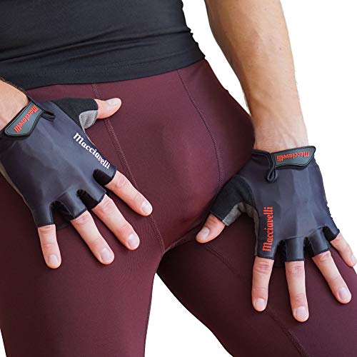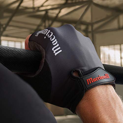 Was zeichnet deine MACCIAVELLIs aus? Edle Fitness Handschuhe für Dein Training oder den Wettkampfbereich Durchdachte Material-Features: atmungsaktive Lycra-Membran, EASY-OFF Ausziehschlaufen, ausgeglichener Grip durch robustes Kunstleder und saugstarke Daumenrücken für die Schweißaufnahme Geeignet für den Gebrauch im Krafttraining, Bodybuildung, Crossfit und Calisthenics – im Gym oder Outdoor Die richtige Größe für jeden – Männer, Frauen und Kinder – solltet ihr dennoch die falsche Größe bestellt haben ist der Umtausch kostenlos, unkompliziert und schnell Beispielloser Service von Sportlern für Sportler – vor und nach dem Kauf Design und Features im Detail Trockene Hände – die elastische und Atmungsaktive Lycra-Membran unterstützt Dich bei deiner natürlichen Temperaturregulierung. Schweißnasse Hände bei intensivem Krafttraining gehören somit der Vergangenheit an. Komfort und Schutz – die strategisch platzierten 3-Wege-Druckpolster gewährleisten einen perfekten Schutz vor Hornhaut und Druckstellen und erhöhen somit dein Durchhaltevermögen. Die ergonomische Linienführung sorgt darüber hinaus für die nötige Flexibilität beim Training an allen Geräten.Kein Gefummel mehr – die EASY-OFF Ausziehschlaufen garantieren dir ein entspanntes und sekundenschnelles ausziehen deiner Sporthandschuhe und macht dein Training frustarationsfrei.Schluss mit Schweiß in den Augen – die feine Baumwolle auf dem Daumenrücken deiner Sporthandschuhe dient als Schweißband und ermöglicht es dir den Schweiß weg zu wischen bevor er dir in die Augen rinnt und den Flow deines Krafttrainings stört.Die richtige Größe für Dich Messe dazu einfach deinen Handumfang oberhalb deines Daumens (Der Umtausch ist kostenlos):S: 17-19 cmM: 19 – 21 cmL: 21 – 23 cmXL: 23 – 25 cmXXL: 25 – 27 cm
