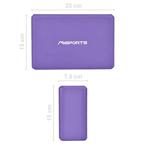 MSPORTS YOGABLOCK – Der Msports Yogablock ist sowohl für den PROFESSIONELLEN STUDIO- und KURS-BEREICH als auch für das Yoga Training zu Hause geeignet. Der Yogablock dient als Hilfsmittel bei Yogaübungen. Das Material ist GELENKSCHONEND, gleichzeitig auch ROBUST und daher für den Einsatz bei Yogaübungen geeignet.PREMIUM-QUALITÄT – Der Yogablock mit strapazierfähiger Beschaffenheit wird durch angenehmem und RUTSCHFESTEM SYNTHESEKAUTSCHUK (NBR) – Material hergestellt. Der HOCHWERTIGE und UMWELTFREUNDLICHE Kautschuk enthält keine Weichmacher und ist somit – Physiologisch unbedenklich, hygienisch einwandfrei, geruchlos, HAUTFREUNDLICH und ROBUST. HILFSMITTEL FÜR YOGAÜBUNGEN – Als Hilfsmittel eignet er sich wunderbar für Yogaübungen, wenn die die Flexibilität noch nicht ausreicht, zum Beispiel bei Trikonasana, dem Dreieck. Wer noch nicht so flexibel ist, dass er seine Hand neben dem Fuß auf dem Boden absetzen kann, der kann den Block, entweder hochkant oder flach auf den Boden legen und sich mit der Hand auf ihn abstützen.VORTEILE – Der Yogablock dient nicht nur als Hilfsmittel für Yogaübungen, der zweite Vorteil ist, dass man mit ihm entspannen und BLOCKADEN LÖSEN kann. Mit einem Gewicht von nur 250 Gramm ist der Yogablock sehr leicht und daher leicht zu verstauen oder zu transportieren.DATEN UND VERSAND – Material: Hochwertiger Kunststoff | Farbe: je nach Auswahl | Maße: ca. 23 x 15 x 7,5 cm | Lieferumfang: je nach Auswahl entweder 2x oder 1x Msports Yogablock in Flieder | VERSAND – Erfolgt über Paketdienst DHL, nicht an Packstation, da das Paket zu groß ist.