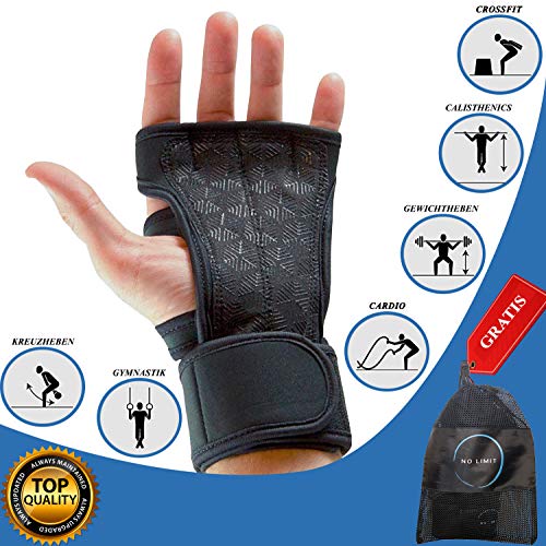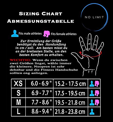 Integrierte Handgelenk-Bandage:Vermeidet Verletzungen und unterstützt die Stabilität im Handgelenk optimal mit unserer integrierten Handgelenk-Bandage! Einfach per Klettverschluss anzupassen und der optimale Schutz für Mann und Frau! Unverzichtbar bei Bankdrücken, Schulterdrücken, Dips etc. Silikon Grifffläche:Neben dem Schutz vor Schwielen und Blasen, dient sie vor allem einem, eurem Grip! Keine schwitzigen Handflächen, kein Griffkraftverlust und kein lästiges Nachgreifen mehr! Bewegungsfreiheit:Durch 90% Neopren-Anteil sind die NOLIMIT Fitnesshandschuhe nicht nur leicht, sie lassen eure Hände auch besser atmen und sie trocknen auch nach dem einfachen Waschen deutlich schneller. Das Mittelband auf dem Handrücken sorgt zudem für mehr Stabilität, weniger Verrutschen und eine optimale Passform. Dieses Design ist extra für eines geschaffen, Bewegungsfreiheit! Handmittelknochen und Finger bleiben uneingeschränkt beweglich und das Mittelband sorgt für extra Stabilität – für einen direkterenund stärkeren Griff! GRATIS TASCHE:Einen praktischen Mesh-Bag / Beutel mit Zugband erhaltet ihr gleich dazu. Der sieht nicht nur stylisch aus, er schafft auch gleich etwas Ordnungin der Sporttasche und man hat immer sofort beide NOLIMIT Fitnesshandschuhe griffbereit!