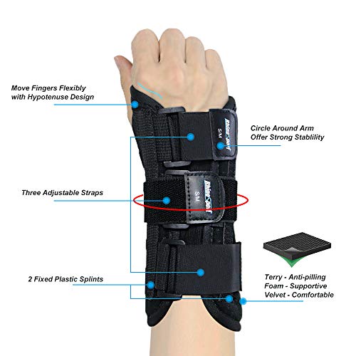 Spezifische Manifestationen des Karpaltunnelsyndroms?Hand und Handgelenksverletzungen umfassen normalerweise akute und chronische Verletzungen. Die akute normalerweise mit plötzlichen Trauma wie Fraktur, Rissfraktur, Verstauchung, Metacarpal- und Skaphoid-Verletzungen, postoperative Irritation und posttraumatischen Schmerzen, etc. Die chronische in der Regel durch Überlastung oder wiederholte Bewegung wie Karpaltunnelsyndrom, Arthritis, CTS, RSI, Tendinitis , Osteoarthritis und Orthese.Diese EXski Handgelenkstütze kann die Beschwerden von verschiedenen Handgelenkbeschwerden, wie Schmerzen, Taubheitsgefühl, Kribbeln, Schwäche usw., erheblich lindern.Wie funktioniert diese RhinoSport Handgelenkstütze?Zwei SchienenLöffelform schiene trifft vollständig den Handbogen, stellt eine natürliche Position sicher, um Heilung zu fördern;Halbkreisförmige Schiene verstärkt den fixierten Effekt, um den zweiten Schmerz zu verhindern, keine Presse zu den GelenkenVier Bandagen27,5cm lange Klettbandagen zum Anpassen der Kompression für verschiedene Schmerzzustände. Silikonstreifen gewährleisten keinen Verlust;3 kurze Klettverschlüsse zur individuellen Anpassung von Handflächen, Handgelenk und Unterarm. Empfohlene GrößeS / M 13-17 (cm)M / L 17-22 (cm)L /XL 22-28 (cm)Hinweis:1. Bitte wählen Sie den geeigneten Druck entsprechend Ihrer persönlichen Fähigkeiten aus, da dies sonst zu Unwohlsein führen kann.2. Entfernen Sie die Stützstreben während der Reinigung und waschen Sie sie von Hand. Waschen Sie die nicht mit der Waschmaschine. Verwenden Sie warmes oder kaltes Wasser, um sie zu reinigen. Vermeiden Sie die Verwendung von starken Chemikalien.3. Bitte bleiben Sie die fern vom Feuer.4. Bügeln Sie die nicht.