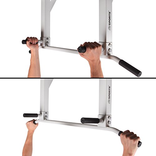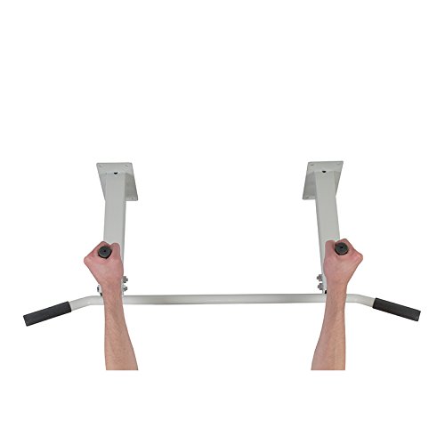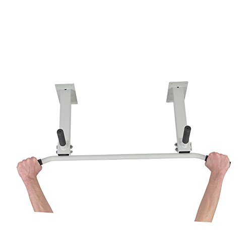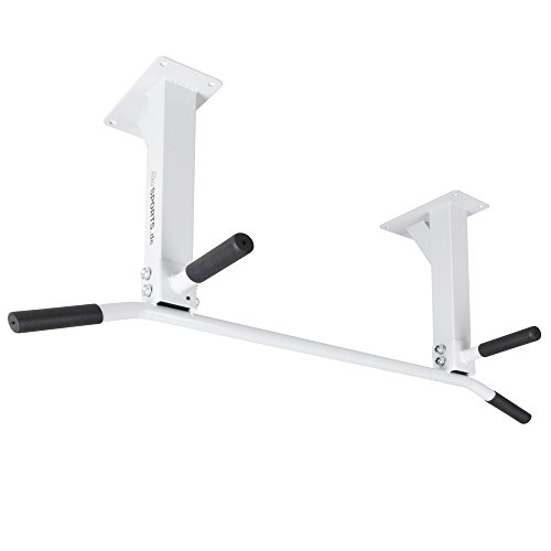 ScSPORTS Klimmzugstange für Deckenmontage Klimmzugstange zur Deckenmontage inklusive Befestigungsmaterial. Mit Klimmzügen kannst Du Deine Rücken-, Arm-, hintere Schulter- und Bauchmuskulatur effektiv trainieren. Dabei kannst Du Klimmzüge mit weitem Obergriff, Hammergriff oder engem Untergriff ausführen. Die rutschfesten Griffe der Klimmzugstange geben Dir einen sicheren Halt. Auf einen Blick: 1 x Klimmzugstange 8 x Schwerlastdübel für Deckenmontage Technische Daten: Material: Hohlstahl Maximale Belastbarkeit: 150 kg Gewicht: 5 kg Maße: 98 x 22 x 45 cm (LxBxH) Abstand zwischen den Parallelen Handriffen: 53 cm Länge Griffe: 11 cm Durchmesser Griffe: 2,5 cm Durchmesser Rohr: 2,5 cm Abstand Decke – Querstange: 35,5 cm Befestigungsfläche pro 4-Kant-Rohr: ca. 19,5 x 9,3 cm