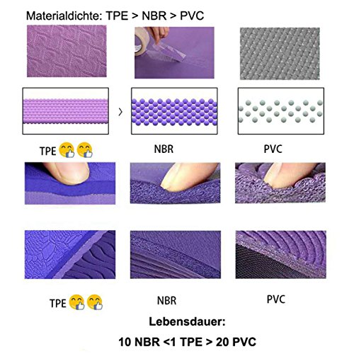 Sosila TPE Yogamatte, ECO Gymnastik Matte, rutschfest, umweltfreundlich, hypoallergen und hautfreundlich, ideal für Yoga, Pilates und Fitness, mit Tasche und Trageband, 183 x 61 x 0,8 cm Die hochwertigen Yogamatten von Sosila bieten Ihnen mehr Spaß bei Ihren Yoga- Gymnastik-, Turn-, Kraft- und Fitnessübungen. Erstklassige Verarbeitung, ansprechende Farben und Designs sowie das strapazierfähige TPE-Material machen unsere Yogamatten zur besten Wahl für Fitness-Studios, Schulen, Yogaschulen und Praxen. Unsere Yogamatten sind sehr leicht zusammenrollbar, pflegeleicht und bedenkenlos abwaschbar. Das TPE-Material mit einer Dicke von 0,8 cm ist sehr weich und extra gelenkschonendem. Unsere Yogamatten sind von der unabhängigen und renommierten Institut SGS analysiert und geprüft worden. Sie sind phthalat- und schwermetallfrei (schadstofffrei). Das Material ist hochwertig, rutsch- und abriebfest, hautfreundlich und hypoallergen. Unsere Matte ist ideal für das Fitnesstraining egal zu Hause oder im Studio. Sie ist für viele Sportarten geeignet, z.B. Aerobic, Pilates, Gymnastik, Rücken- und Bauchmuskeltraining, Schwangerschaftsgymnastik, Work-Out, Krafttraining und Kinderturnen. Deshalb kann sie in vielen Bereichen verwendet werden, z.B. für Fitness-Studios, Schulen, Kindergärten, Reha-Zentren, Wellness, Ballettschulen, Bodenturnen, Massage, Kliniken, Vereine, Seniorenturnen, Kinderturnen, Physiotherapie, medizinische Zentren, Ärzte etc. Lieferumgang: 1x Sosila Yogamatte 1x Trageband 1x Tasche Sample of TPE YOGA MAT has been tested by SGS according to „**SVHC screening, according to:(i) Eight (8) substances in the Candidate List of Substances of Very High Concern (SVHC) for authorization published by European Chemicals Agency (ECHA) on and before Jan 12, 2017 regarding Regulation (EC) No 1907/2006″**.** on 22 May 2017, report No. **CANEC1708242409**. Report is available on request and be validated by SGS.