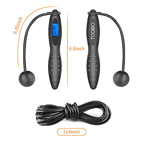 TOQIBO Jump Seile sind eine große Quelle der Übung für alle Altersgruppen und alle Ebenen der Aktivität und Geschick. Die Springseil ist eine gute Übung für das Cardio, Training und um Gewicht zu verlieren, ideal für die Intervalle, Schaltungen und intensive Trainingseinheiten. Ideal für CrossFit, Boxen MMA. Merkmale: – Ein voll einstellbares Springseil aus hochwertigsten Materialien und für einfache Bedienung. – Tangle-resistentes Seil spart Zeit und Frustration, so dass Sie sich darauf konzentrieren können: Ihre Gesundheit. – Smart Elektronisches Springseil für Erwachsene, digital, Kalorienverbrauch, professionelles Fitnessseil. – Hochauflösende, genaue digitale Anzeige zeigt Ihre Seilspringmenge. – Anti-Rutsch-TPE-Handgriff, bequem zu halten. – Gut für Gewichtsverlust, größer und Fitness. Produktspezifikation: Material: Seil: Hart-PVC, Griff: rutschfestes TPE-Material Produktgewicht: Ungefähr 0.25kg Länge des Seils: Langes Seil: 2.9 m, kurzes Seil: 24 cm Produktfarbe: Schwarz Die Verpackung: 2 * Seilgriff 2 * kurzes Seil 1 * Langes Seil 1 * Schraubendreher 2 * Batterie 1 * Benutzerhandbuch Unser Garantieversprechen Wir bieten kostenlose 12 monatige 100% Geld-Zurück-Garantie! Kaufen Sie mit Vertrauen